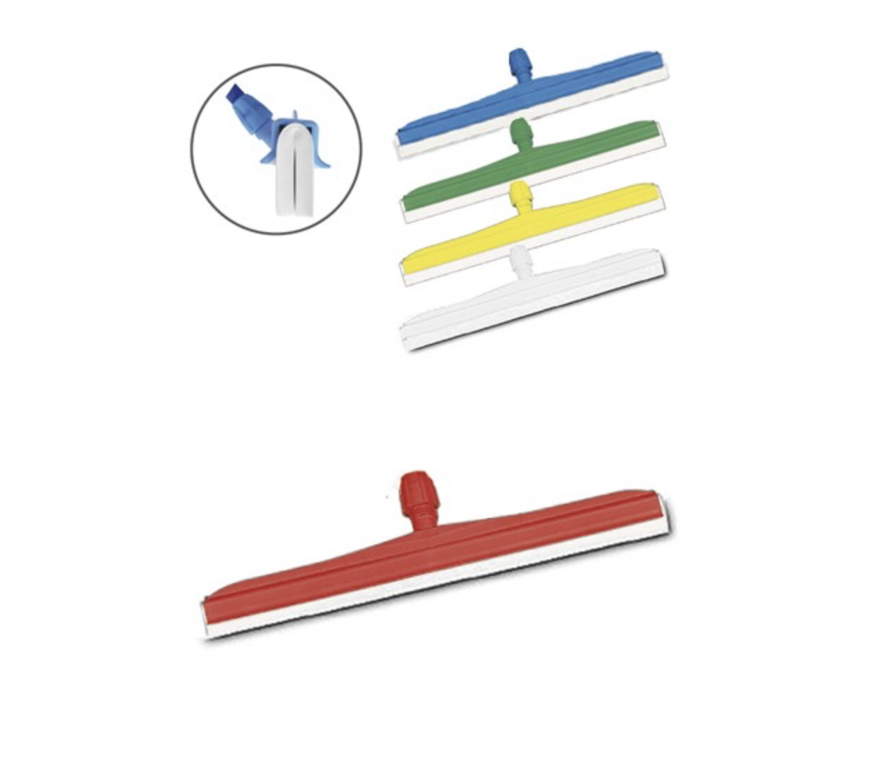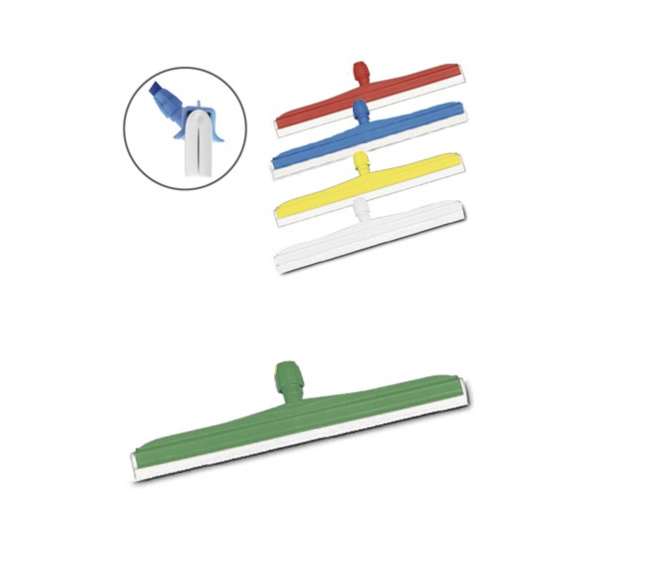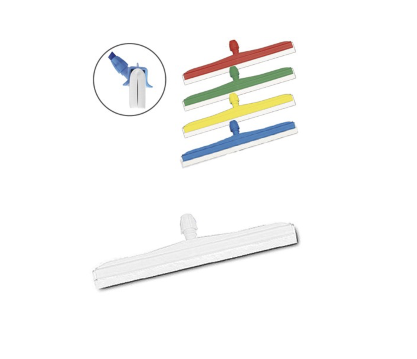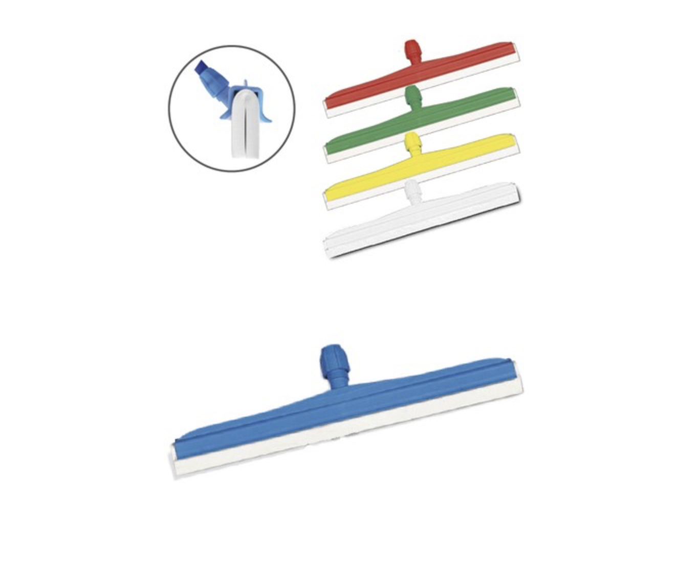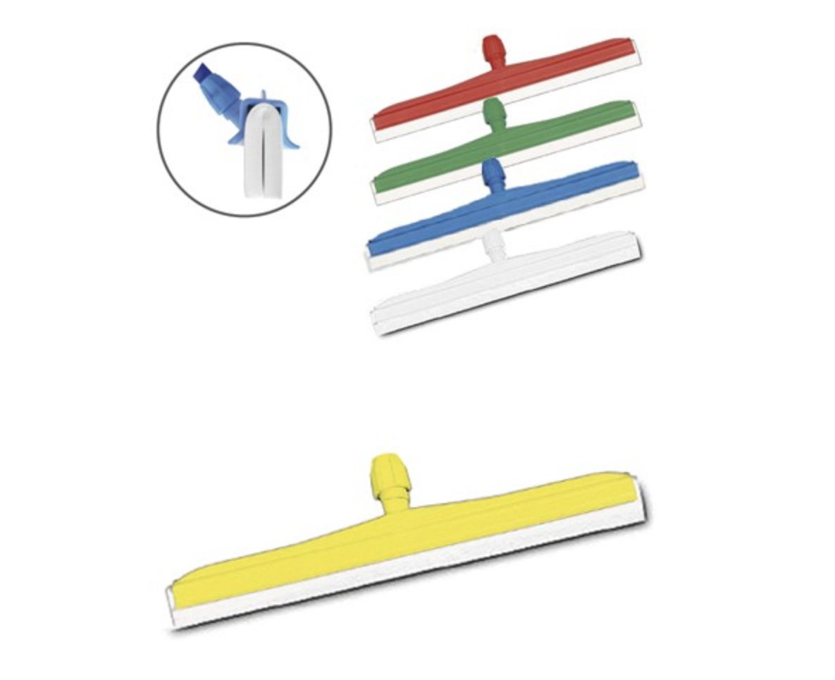 Gracias a su sistema de doble goma blanca, garantiza un secado más uniforme y efectivo, incluso en zonas con gran acumulación de líquidos. Su soporte disponible en varios colores (amarillo, rojo, verde, azul y blanco) facilita la codificación por zonas, cumpliendo con los estándares de higiene en entornos profesionales como cocinas, laboratorios, hospitales, o espacios industriales.